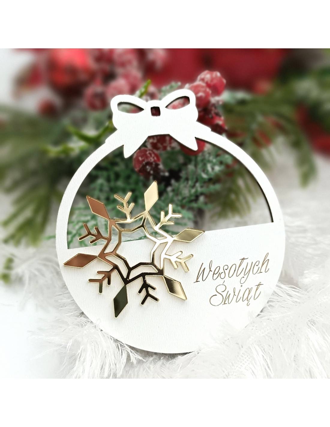 Piękna bombka z delikatnym elementem plexy lustrzanej (do wyboru srebrna lub złota).