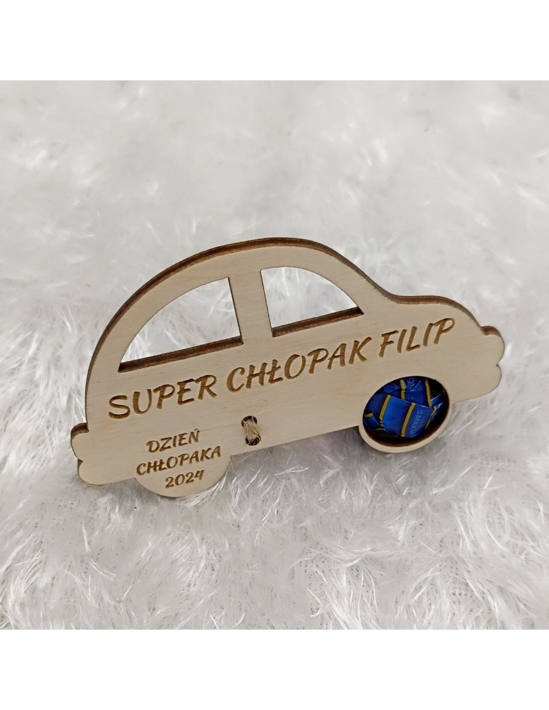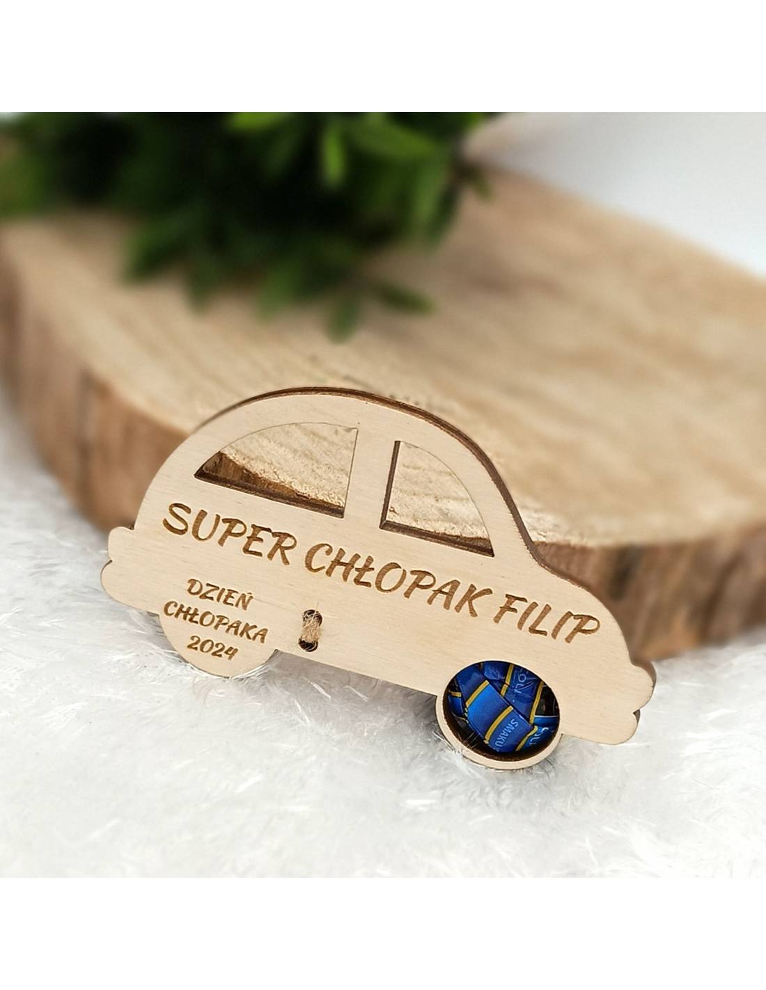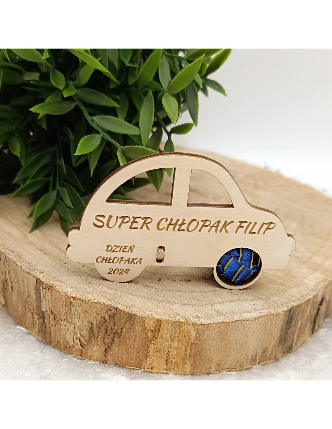 Drewniane Autko na Lizaka z Grawerem i magnesem - Dzień Chłopaka - personalizacja