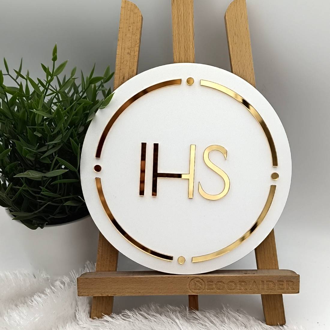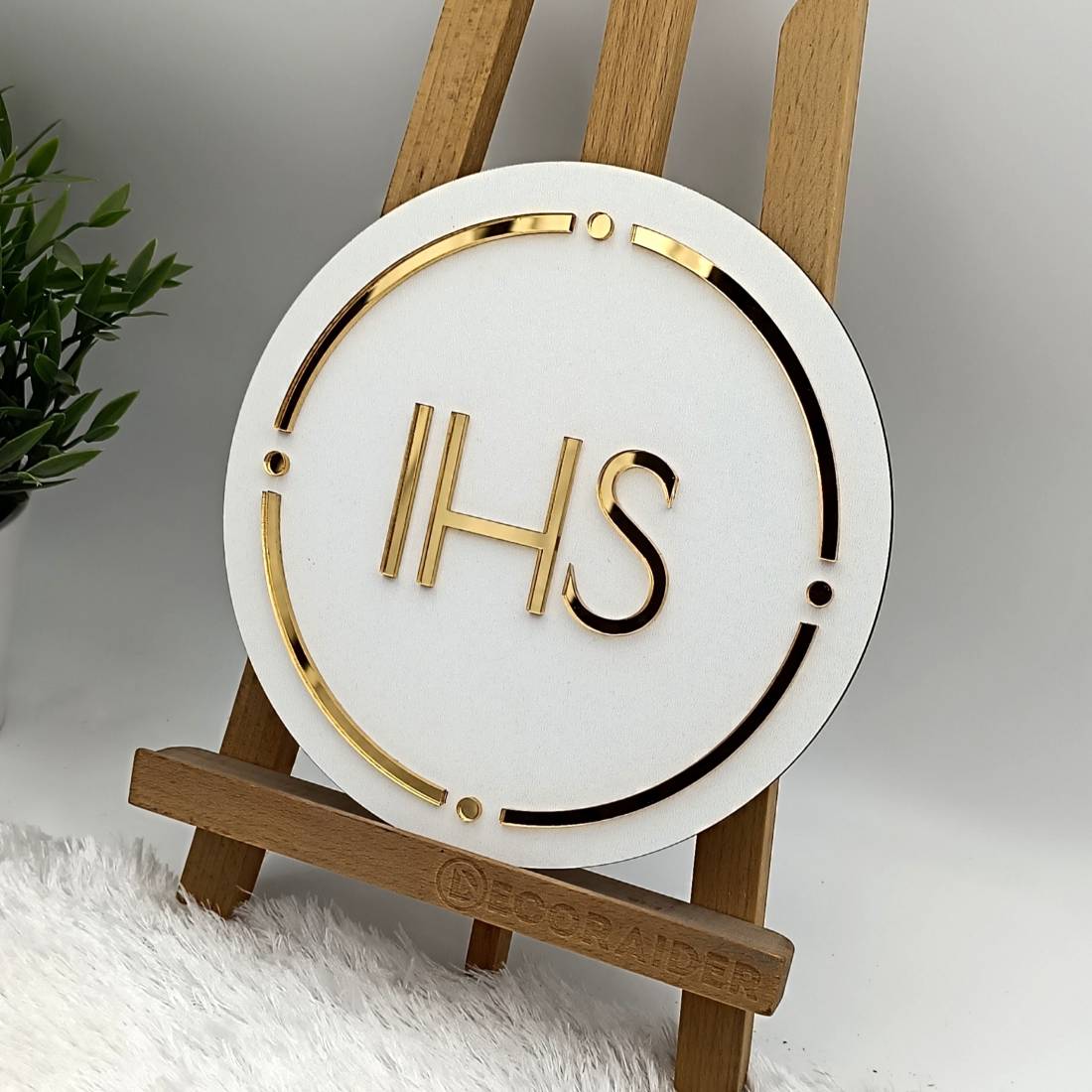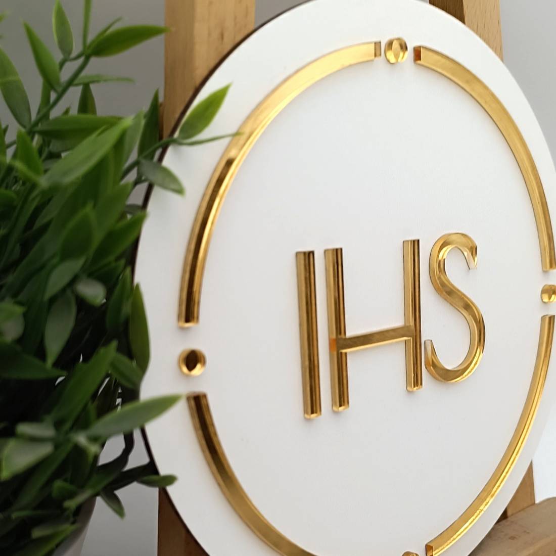 Koło - Dekoracja z lustrzanej plexi - 40 cm - wzór hostii IHS  PIERWSZA KOMUNIA ŚWIĘTA
