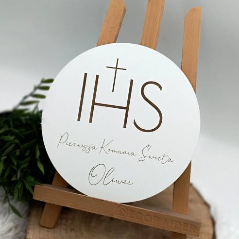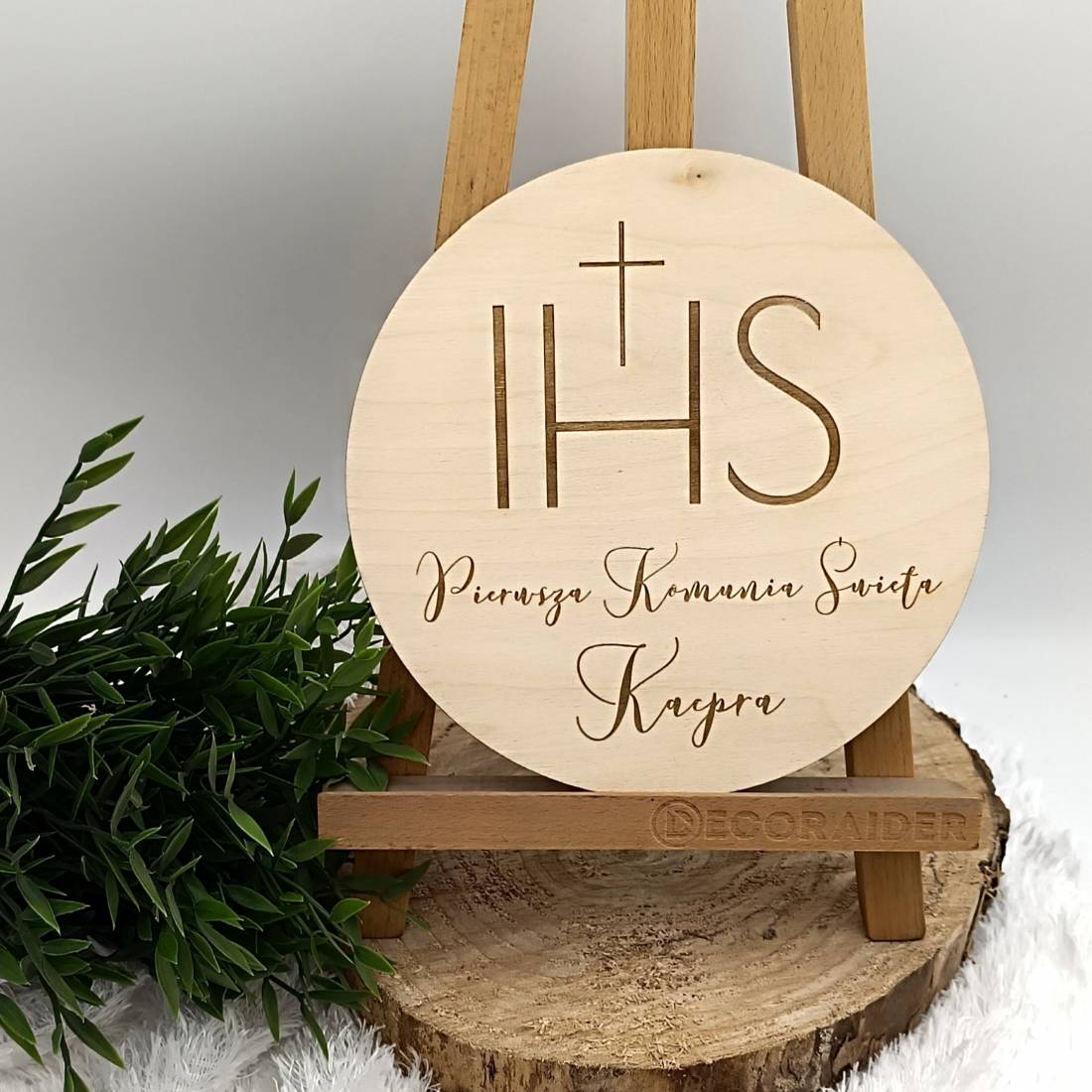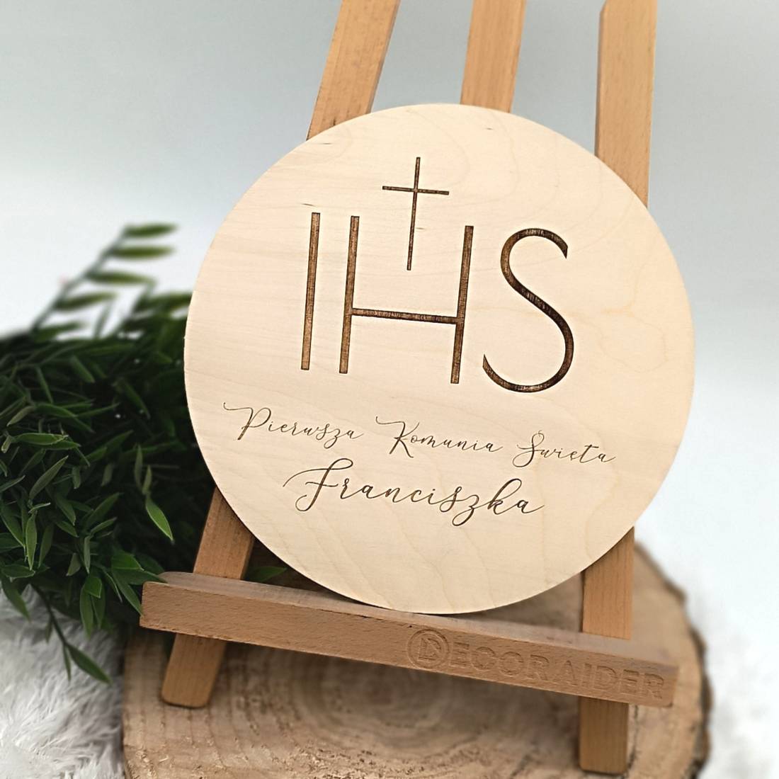Stwórz wyjątkową atmosferę podczas uroczystości I Komunii Świętej dzięki eleganckiej dekoracji w formie personalizowanego koła! Wykonane z naturalnej sklejki o grubości 3 mm lub białego hdf-u, stanowi piękną ozdobę sali, ścianki lub stołu, nadając wnętrzu niepowtarzalny charakter.