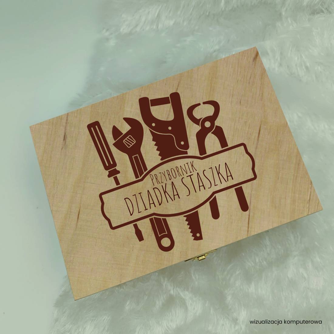 Skrzynka dla dziadka jako przybornik dla majsterkowicza I NIE TYLKO to doskonały pomysł na funkcjonalny i osobisty prezent, który może służyć do przechowywania drobnych akcesoriów do napraw ale i innych drobnych przedmiotów, które dziadek może mieć pod ręką.