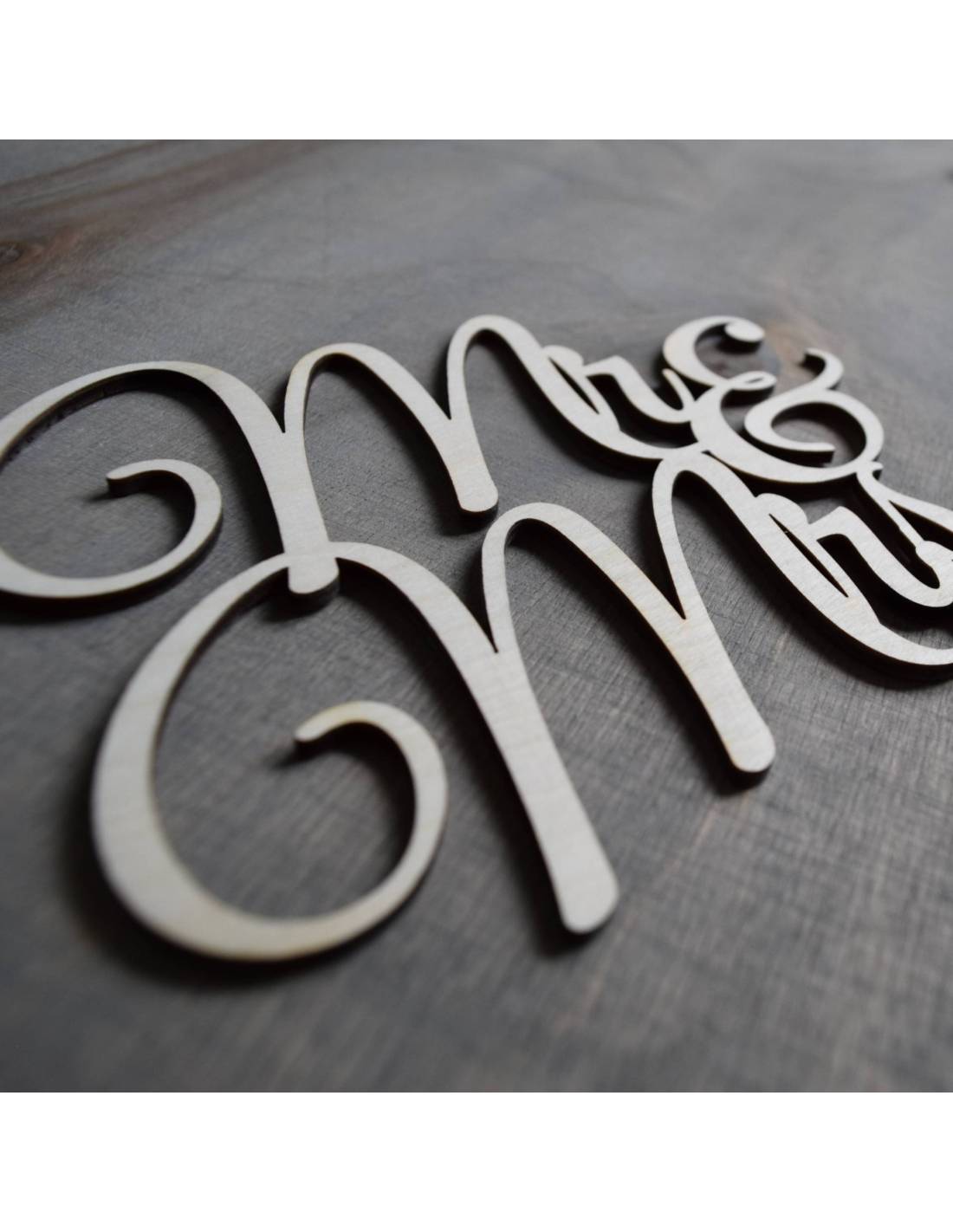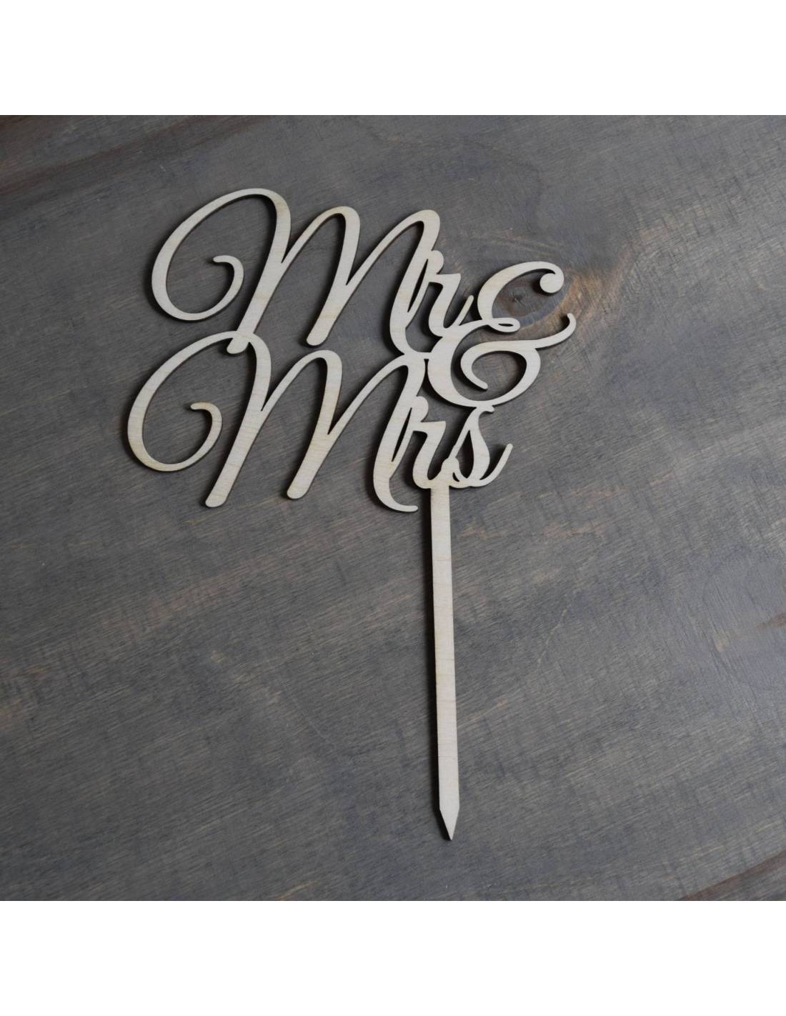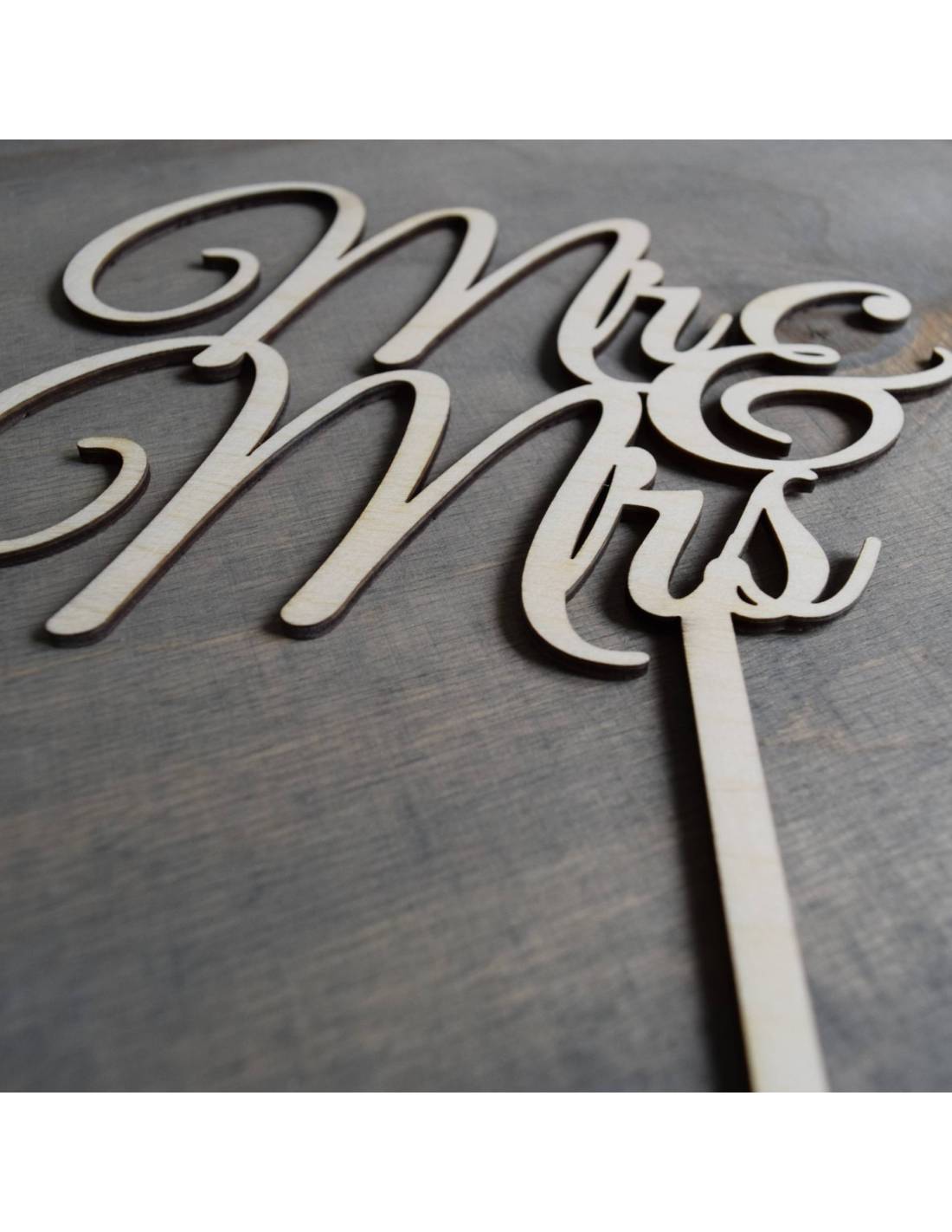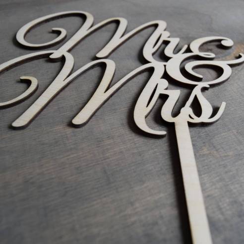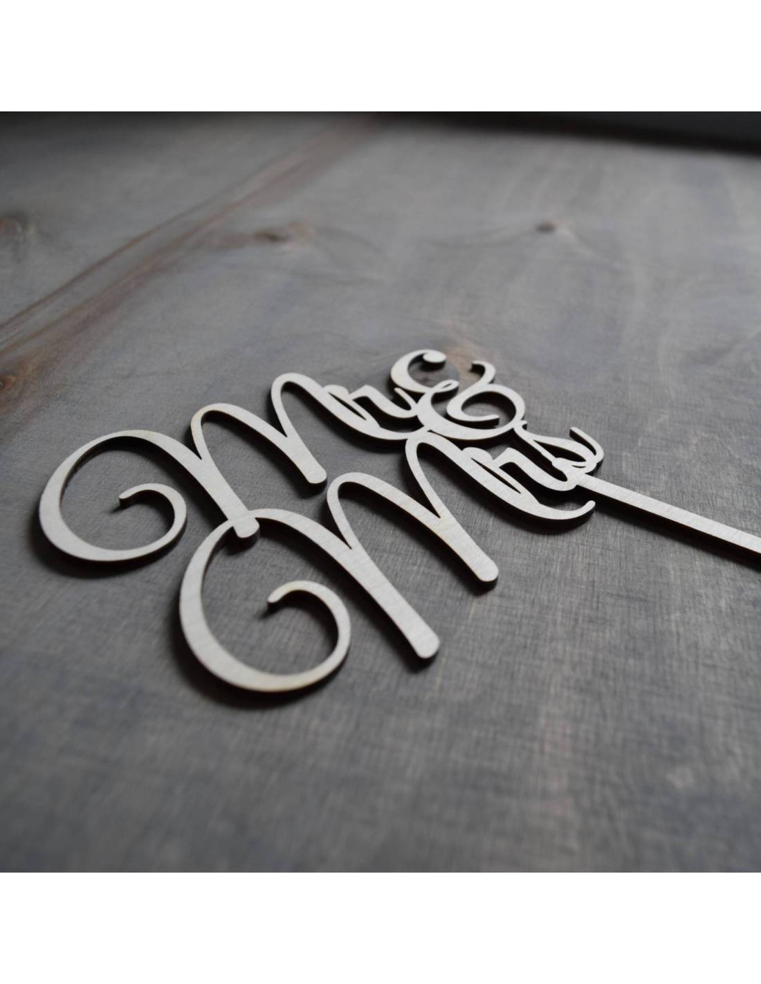 Topper na tort Mr&Mrs,wykonany z naturalnego materiału, sklejki brzozowej ogrubości 3mm.