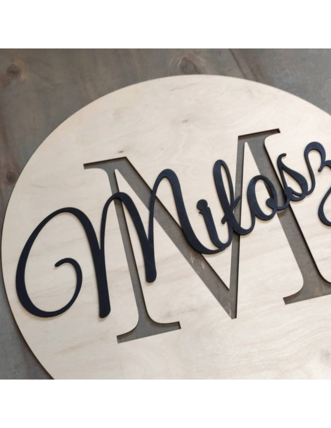 Koła z imieniem to doskonała dekoracja pokoju, szczególnie dziecięcego. Wykona ze sklejki brzozowej, w naturalnym kolorze. Imię w kolorze czarnym.